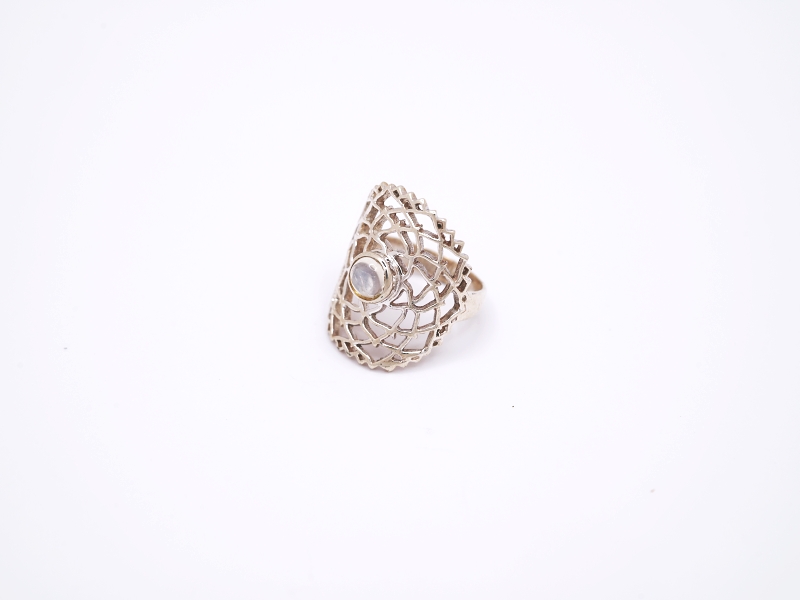 Stříbrný zdobený prstýnek s měsíčním kamenem.