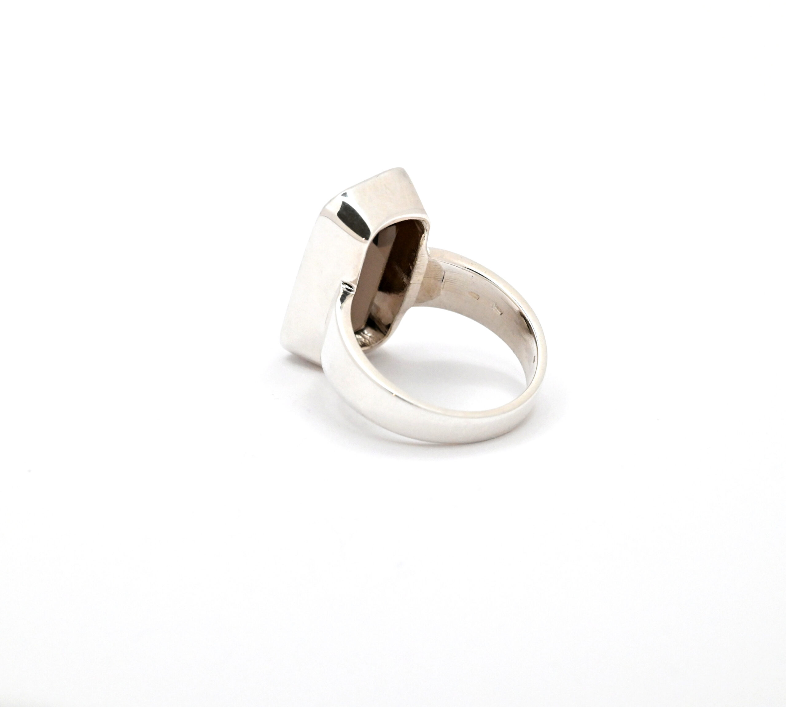 Stříbrný prstýnek s obdélníkovou záhnědou, broušený.